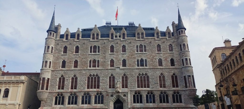 L’arrivée sur Léon est aisée. Nous sommes rapidement devant l’édifice réalisé par Gaudí.