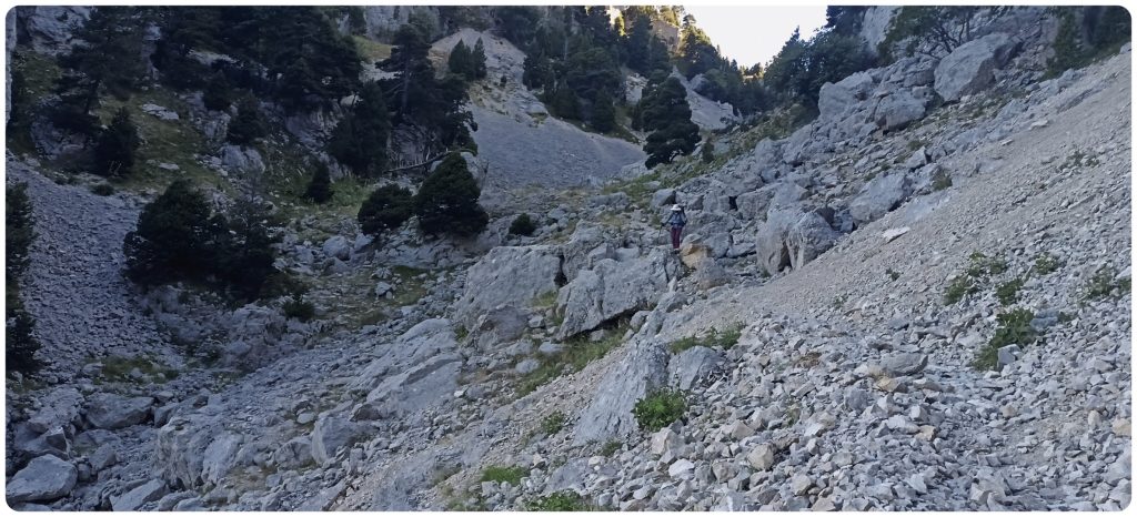 Nous suivons le GR91. L’étape s’annonce longue, 20 km et 1000m de D+. Le sac est lourd =, nous avons 3 jours d’autonomie, sauf l’eau qu’il faudra trouver sur le chemin.
