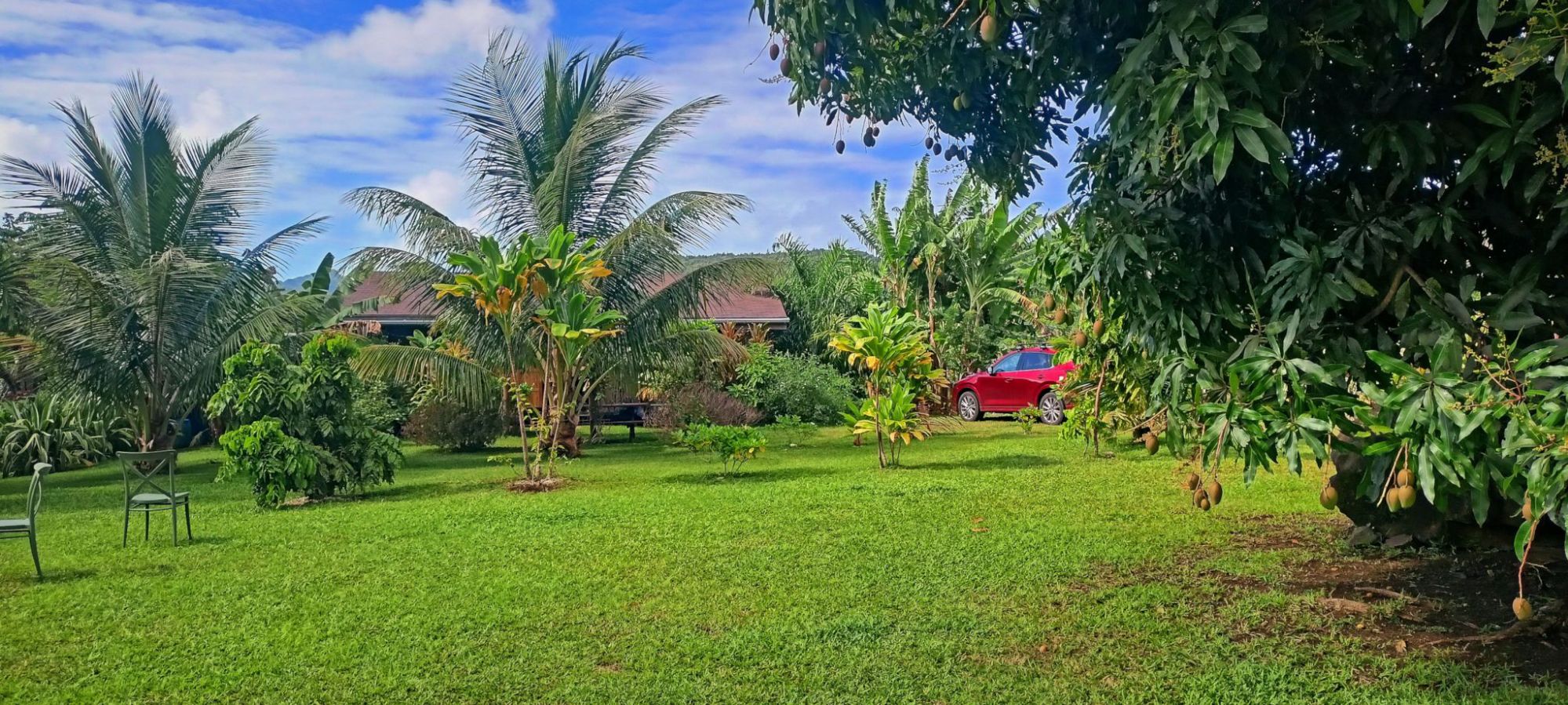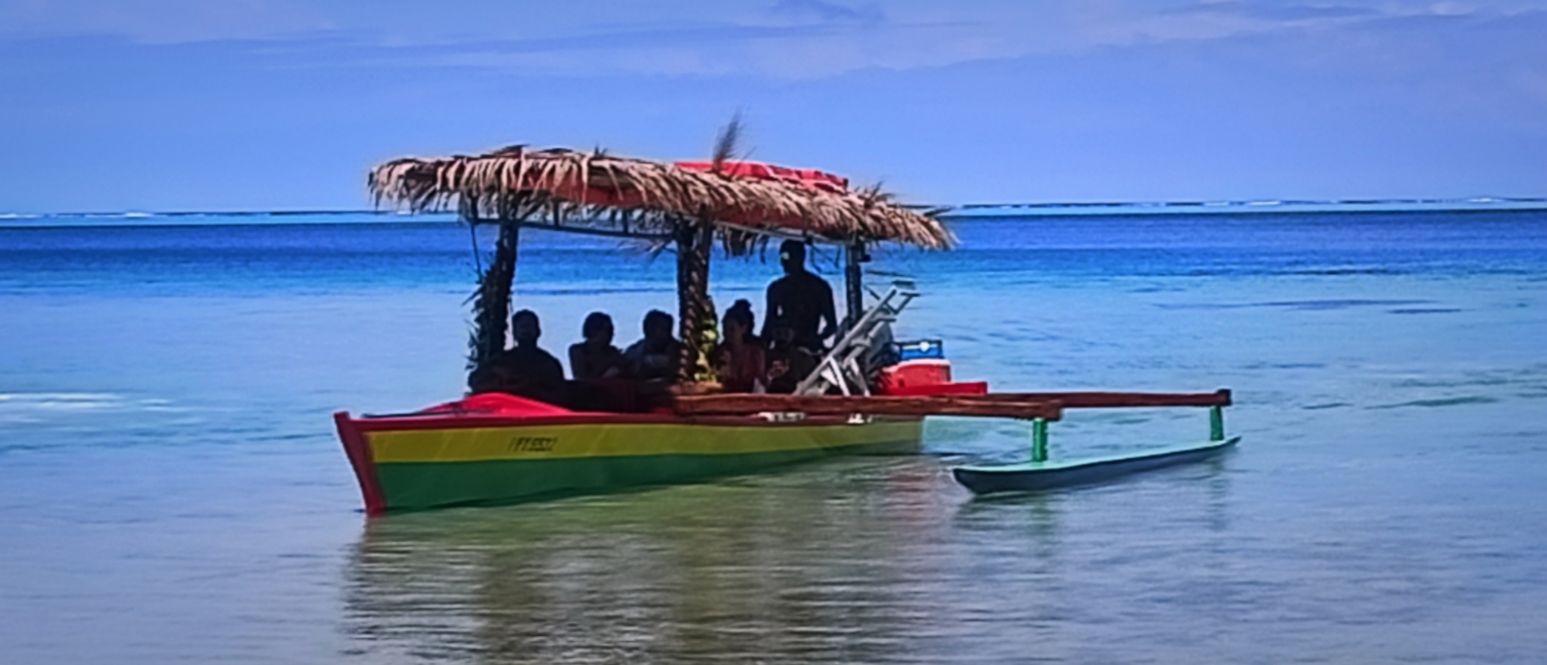 A midi, repas à une roulotte de Fare, direction le camping de Hiva Plage pour deux nuits.